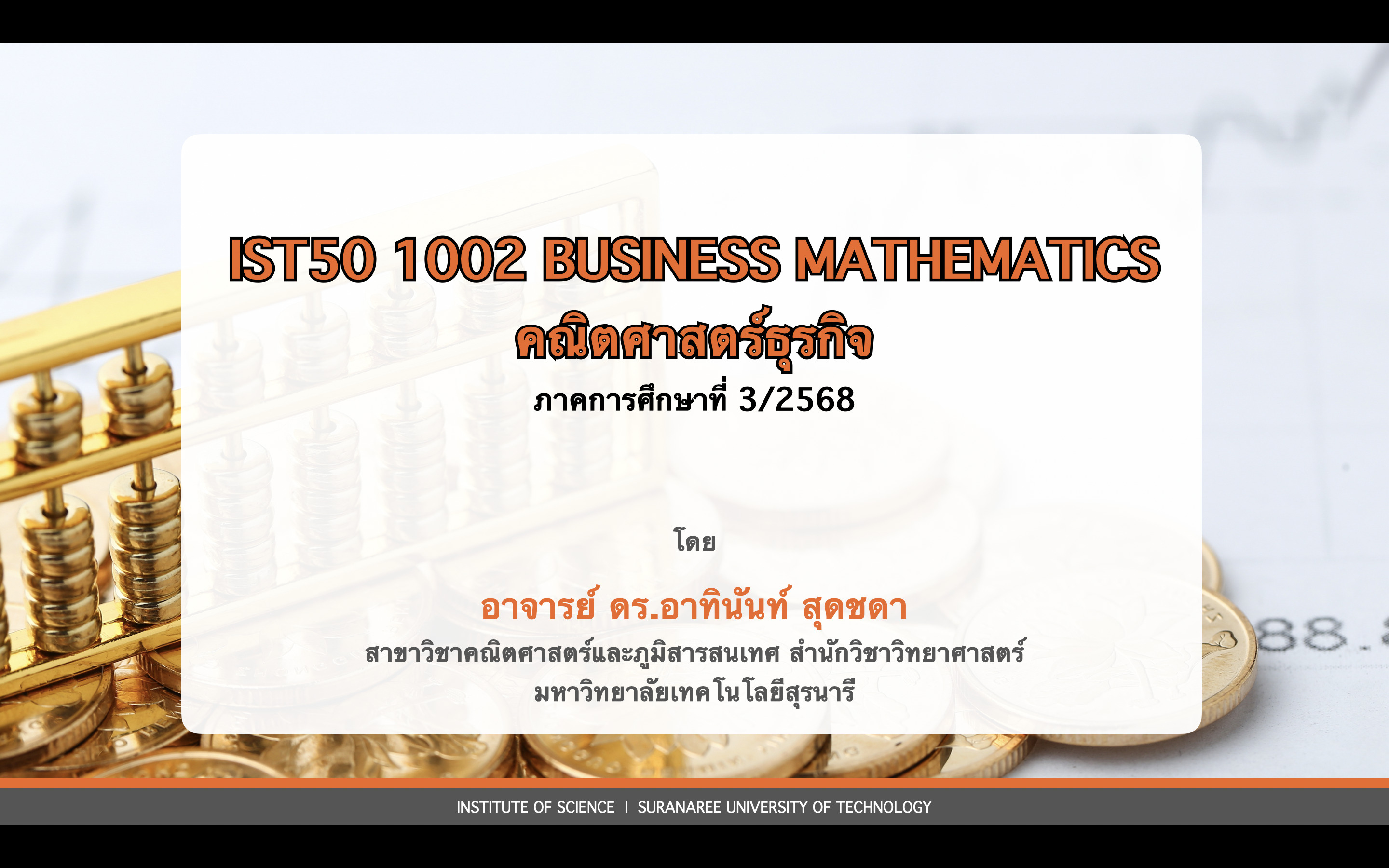 - อาจารย์: อ. ดร.อาทินันท์ สุดชดา